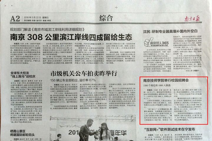 《南京日报》A2—安博电竞·(anbo)官方网站举行校园招聘会