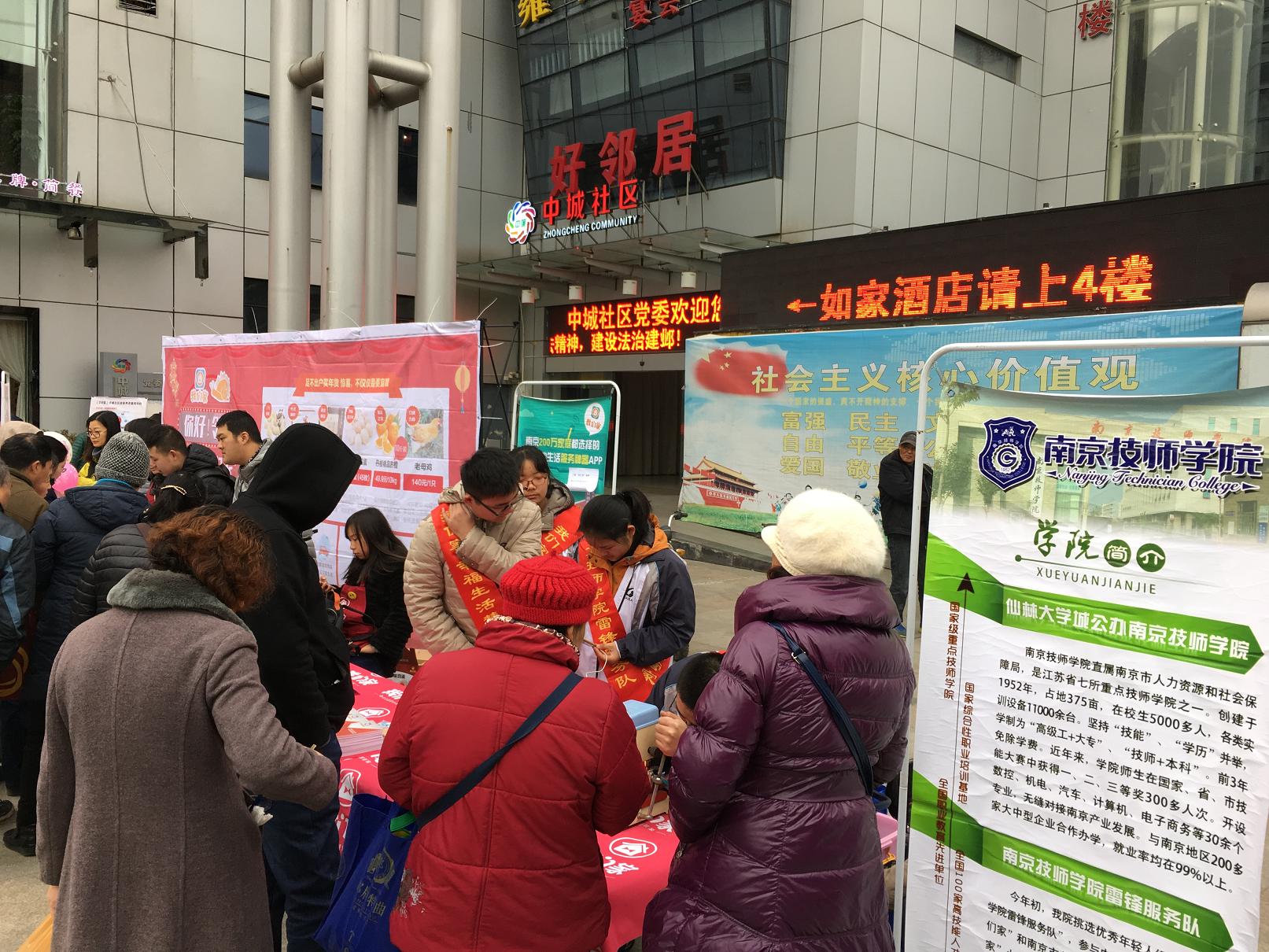 12月24日上午我院师生组成的“安博电竞·(anbo)官方网站雷锋服务队”继续参与了由南京报业集团龙虎网“我们家”智慧社区APP和各社区联合主办的小区市集活动,带着神秘的“圣诞礼物”走进了建邺区沙洲街道中城社区好邻居生活广场,为社区的居民送上了一份惊喜。