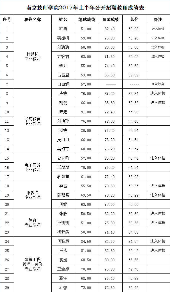 安博电竞·(anbo)官方网站2017年上半年公开招聘教师成绩表
