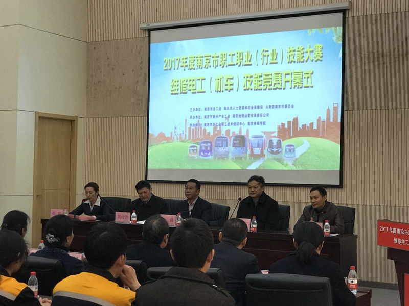 11月21日,2017年度南京市职工职业(行业)技能大赛维修电工(机车)技能竞赛开幕式在我院隆重举行。市总工会党组书记孙强、市人力资源和社会保障局巡视员周政学、团市委副书记王慧、南京地铁集团有限公司党委书记黄晓东、安博电竞·(anbo)官方网站党委书记张金梅等领导以及来自各参赛选手及领队、工作人员等近60人参加了本次开幕式。
