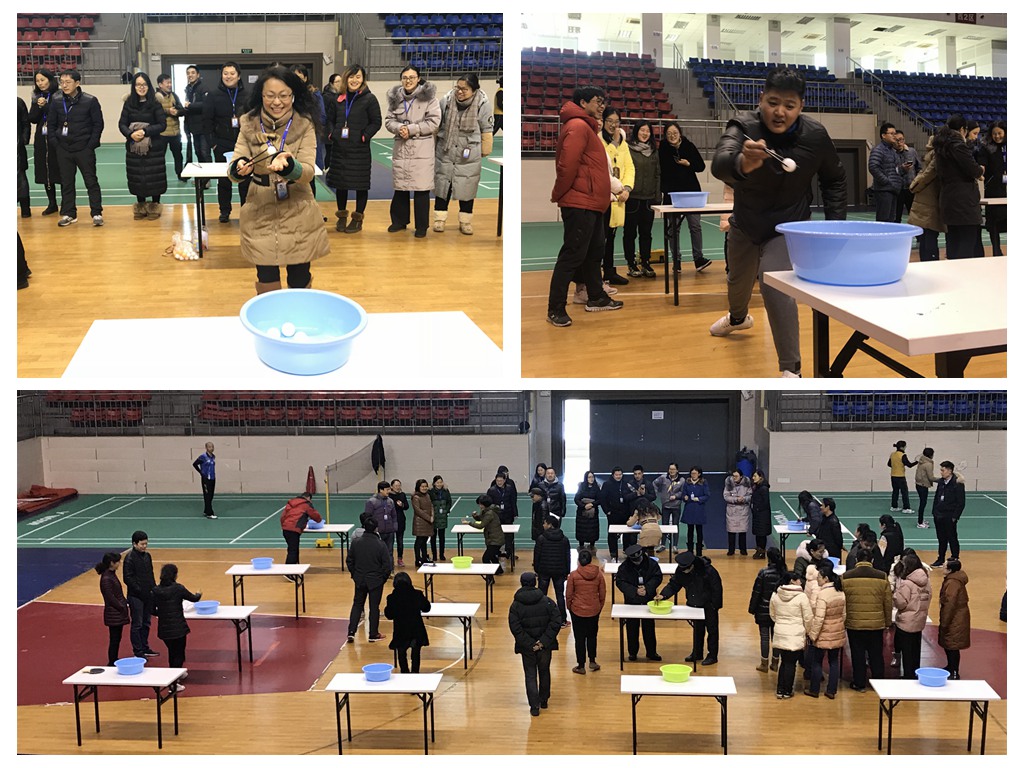 天气虽冷,但教工的心是火热的,教职工乒乓球趣味比赛项目托球跑、夹球跑正在室内体育馆激烈的比拼着......正所谓:甩掉薄棉袄,夹球托球用力跑,兴奋又紧张,争分且夺秒。裁判执法严,队员表现好,激烈而有序,忙碌不乱套。加油声音大,掌声响云霄,身上暖融融,心中乐陶陶。团队意识强,众人兴致高,努力创佳绩,欢笑满场飘。