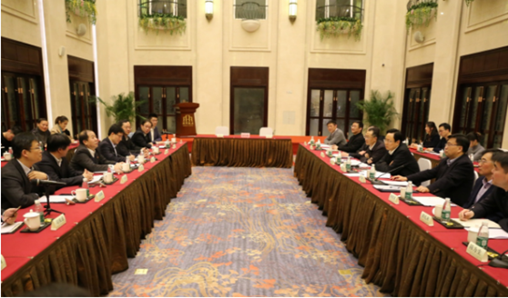 1月23日下午,市政府与上海交通大学举行合作会商会。市长蓝绍敏,上海交通大学校长、党委副书记、中国工程院院士林忠钦出席。市委常委、常务副市长杨学鹏主持。市发改委、科技局、人社局和市“两落地一融合”推进办公室主要负责人以及我院党委书记张金梅、院长侯放参加了会议。