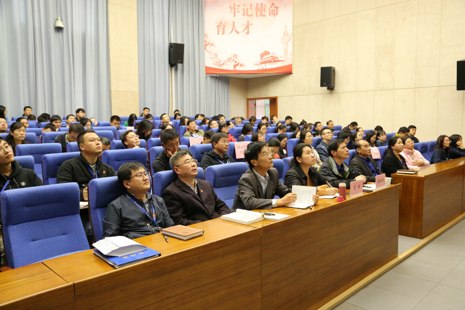 为深入开展“不忘初心、牢记使命”主题教育,不断增强党员守初心、担使命的思想和行动自觉,11月6日下午,学院党委书记张金梅以《守初心,担使命,扎实做好高技能能人培养工作》为题上主题教育专题党课。市第七巡回指导组蒋振洋科长、夏娟科长莅临指导。侯放院长主持会议。全体党员、中层以上领导干部、教务员、学管员、教研组组长参加会议。