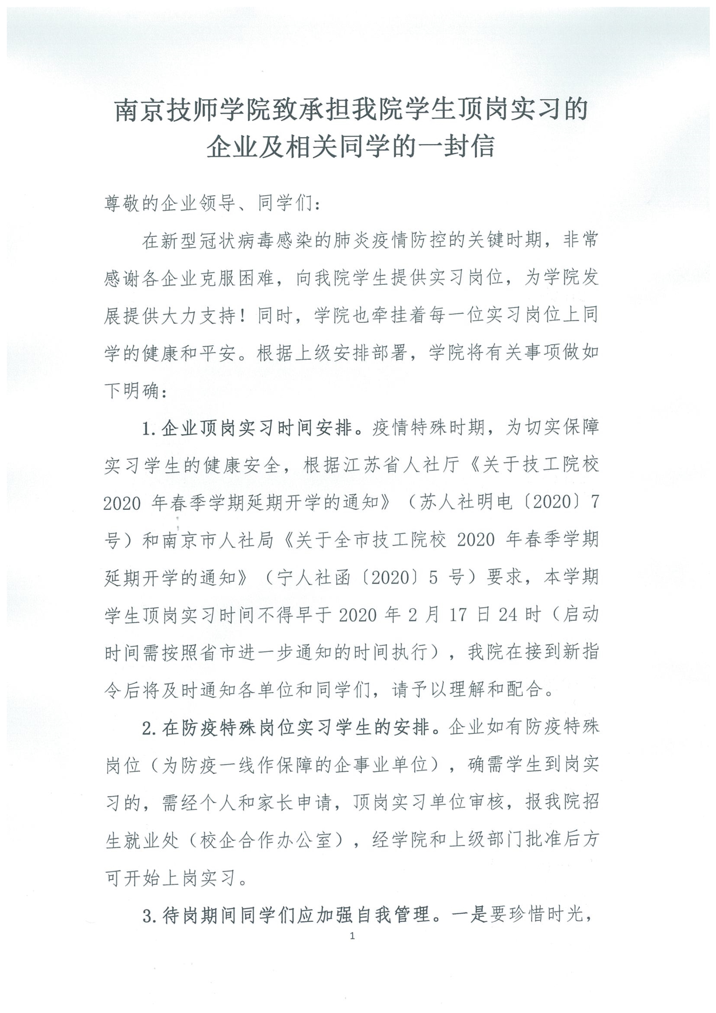 安博电竞·(anbo)官方网站致承担我院学生顶岗实习的企业及相关同学的一封信