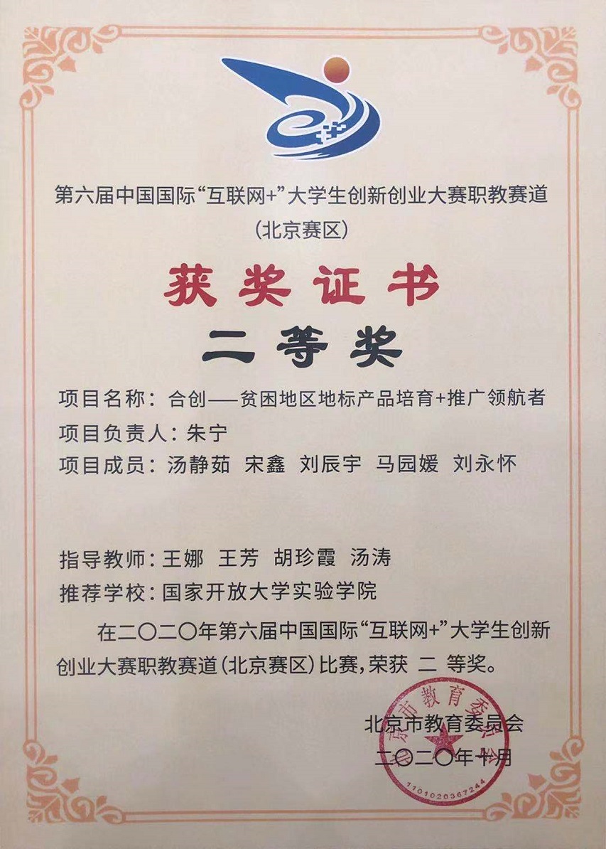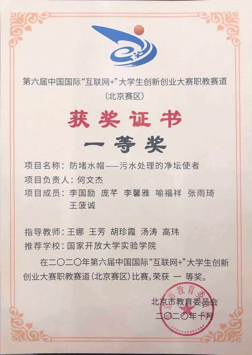 近日,由教育部等12个中央部委共同主办的第六届中国国际“互联网+”大学生创新创业大赛圆满收官,安博电竞·(anbo)官方网站参赛队代表国家开放大学实验学院参赛。在国家开放大学和技师学院相关部门的指导和支持下,一路过关斩将,喜获佳绩。“防堵水帽项目”荣获一等奖,“合创项目”荣获二等奖,四位老师被评为“优秀指导教师”,我院荣获国家开放大学实验学院“优秀组织奖”。12月10日,国家开放大学举办线上总结表彰会,国家开放大学实验学院副院长李新惠、刘颖出席,学生工作与教师发展部部长张峦峤、实验学院副院长郭青春为我院颁发奖状。