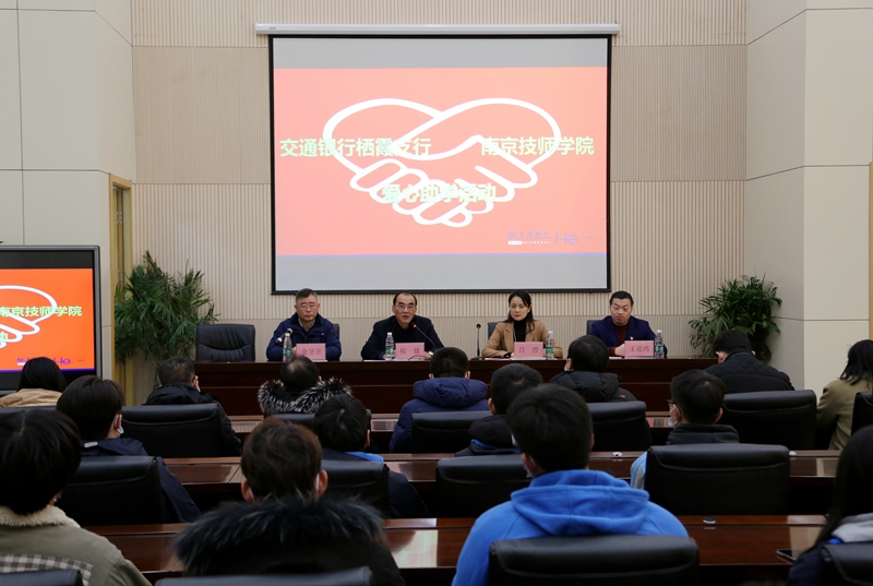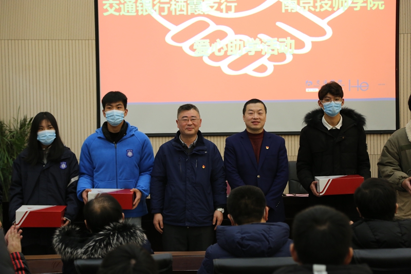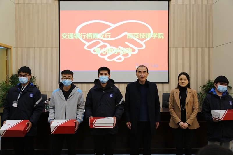 2020年12月24日上午,交通银行栖霞支行副行长吕莹、王道鸿一行五人莅临我院开展爱心助学活动。安博电竞·(anbo)官方网站院长侯放,副院长金卫卫、财务处、学工处负责人及各系教工代表参加活动,20名学生获得爱心帮助。