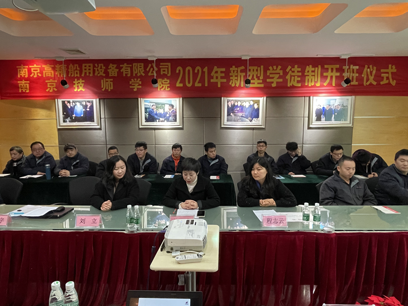 2021年3月13日上午,南京高精船用设备有限公司携手安博电竞·(anbo)官方网站举办了企业新型学徒制培训开班典礼。南京高精船用设备有限公司副总经理戴桂林、总经理办公室主任黄亚琴、二分厂厂长余智洪、六分厂厂长王力、安博电竞·(anbo)官方网站智能制造系主任刘立、学院招就处(校企合作办公室)副主任郑燕以及相关专业导师、培训学员参加了典礼。