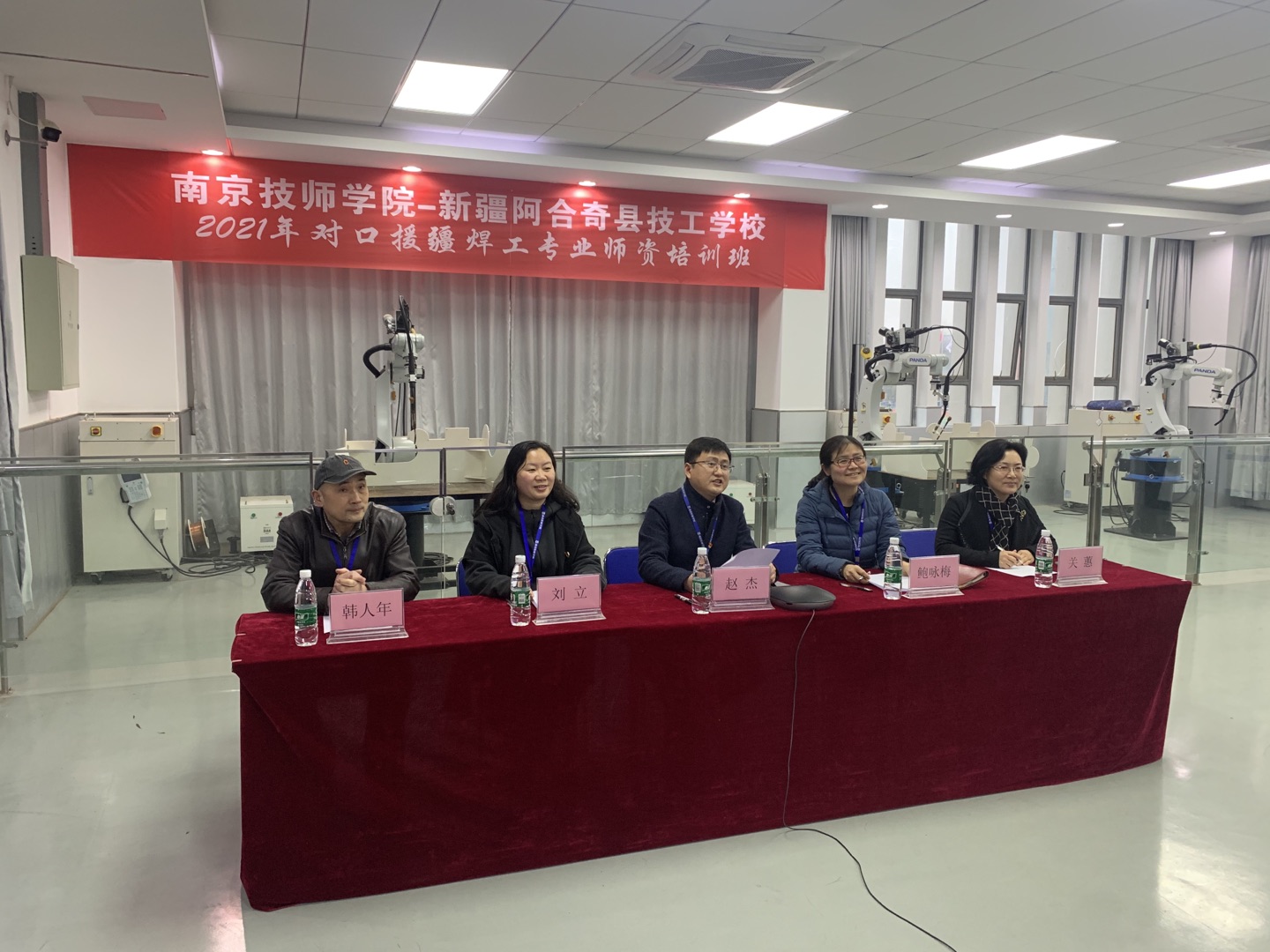 会上,赵杰副院长表示,此次培训是贯彻落实习近平总书记在第三次中央新疆工作座谈会上的重要讲话精神,及9月28日人社厅召开的对口援疆技能人才发展工作推进会的举措之一。南京人社局高度重视,局长刘莅提出要求,要求我院将援建工作做实做细,提升受援学校的办学能力和专业水平,为当地培养更多更好的技能人才。我院高度重视,认真落实,扎实推进,及时与贵校对接,结合贵校需求,商定一系列的对口援疆措施,制定了具体的工作时间表和经费投入计划,总结前一段时间的帮扶工作。我院会加快援助步伐,加大投入,为扎实做好援助工作打好基础。