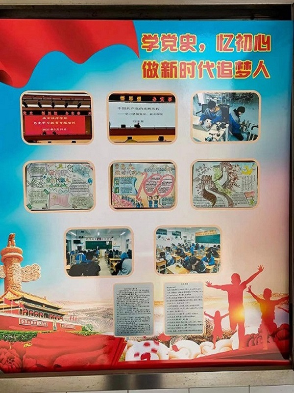 三、利用大小黑板报绘制主题为“学党史做时代新人”歌颂伟大祖国的相关图文宣传。培养学生热爱祖国、建设祖国、奉献祖国的深厚感情。