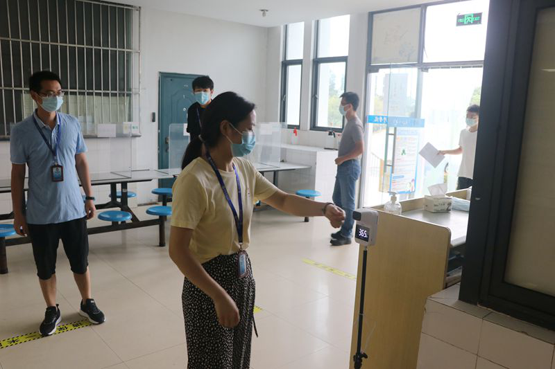 井然有序中也出现了突发事件。一位学生在宿舍突感不适,有发热、乏力、咳嗽症状,自测体温超过37.3℃,立即向宿管员报告。宿管员接到报告后,通知该宿舍人员不得外出,并指引学生转移到宿舍门口的临时观察点,并立即电话向值班人员报告。随后,值班人员通知值班校医快速赶到宿舍门口临时观察点对该学生进行相关处置,经过测量体温、询问有关情况后,学生的体温仍然异常,由学院派车送医院处理。同时,防疫组、安保组到现场维持秩序,划定警戒区域,宿管员着隔离防护服对楼栋和宿舍进行了消毒。发热的学生经医院核酸检测为阴性排除新冠肺炎后,送回学院位于教师公寓的集中隔离区,继续做好观察工作,整个体温异常学生的处置工作显得井然有序。