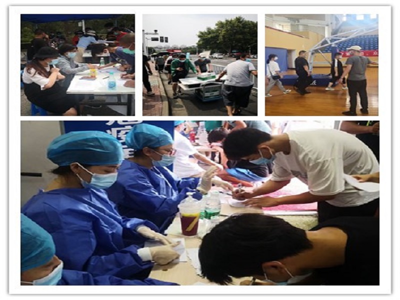 虽然现已入秋,但南京的天气依然炎热,大家不畏日晒,衣服湿了又干,干了又湿,几位领导更是全程参与,所有人都积极配合医护接种人员完成自己的工作。经过大家的努力,一天不到的时间完成我院一千多名学生的新冠疫苗接种工作。