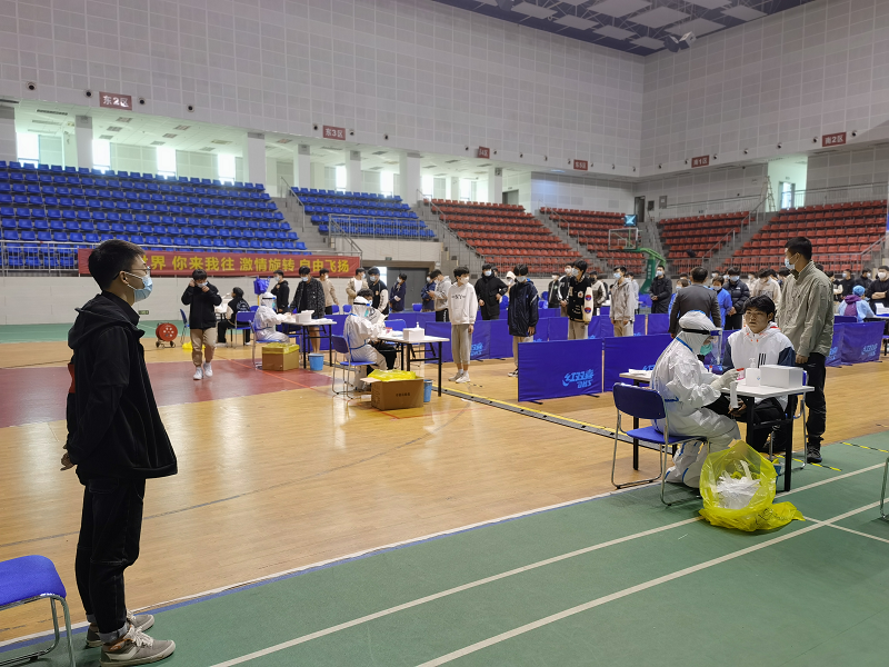 各部门、各系部按照常态化核酸检测要求,提前汇总好接受检测的人员信息。在体育馆内设置采样点,按照规范流程操作,并在采样前和结束后做好相关消杀工作。