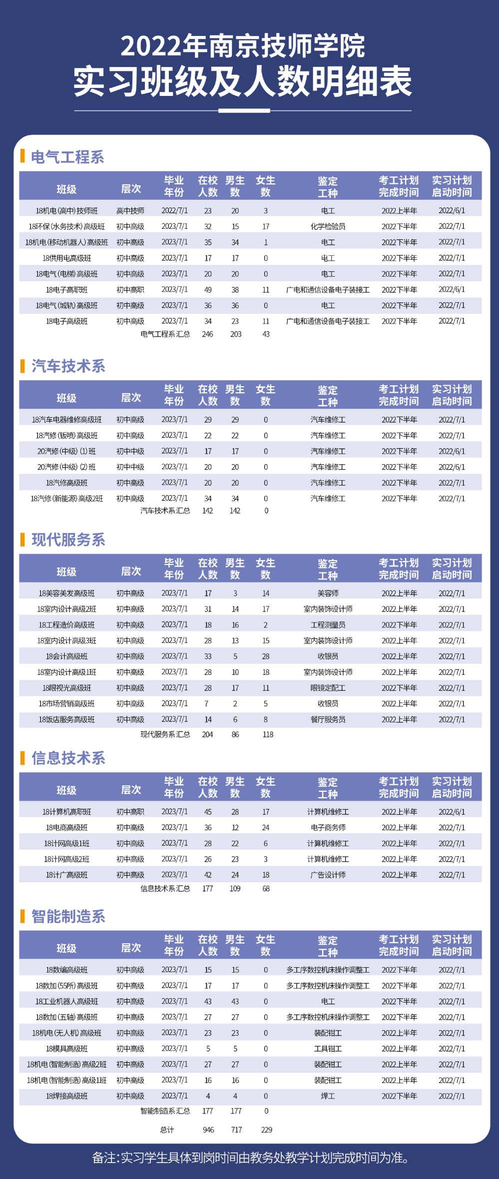 2022年安博电竞·(anbo)官方网站实习班级及人数明细表