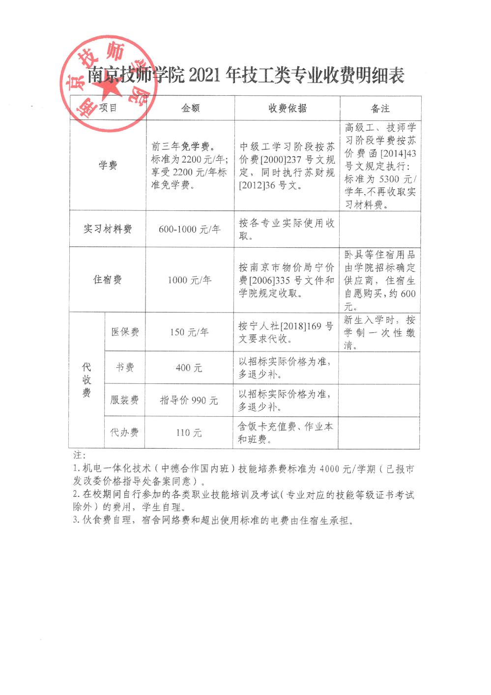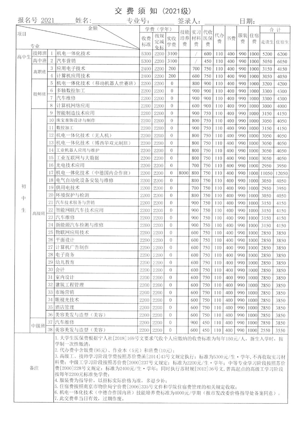 2021年新生交费须知及收费公示