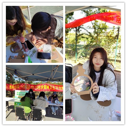 2022年全国世界精神卫生日宣传主题为“营造良好环境,共助心理健康”,为增强心理健康意识,关注心理精神需求,营造维护和促进心理健康和精神卫生的良好氛围,提供适宜的心理支持和心理健康服务,提升心理健康和精神卫生水平,我院心理协会10月10日于一食堂门口举办了主题宣传活动——“寻找秋天的美好,放松自我”DIY手工活动。