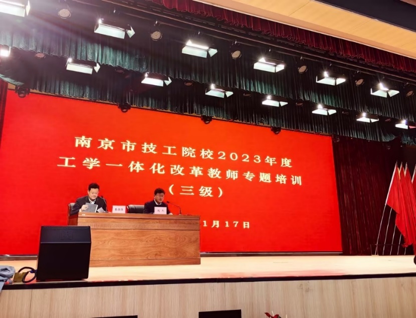 为积极推进工学一体化技能人才培养模式,建设一支高素质、专业化、创新型的技工院校工学一体化教师队伍,11月17日至20日,安博电竞·(anbo)官方网站顺利举办了南京市技工院校2023年度工学一体化改革教师(三级)专题培训班。来自全市10所技工院校的80名骨干教师参加了本次培训。副院长朱胜强、赵杰出席了开班仪式。