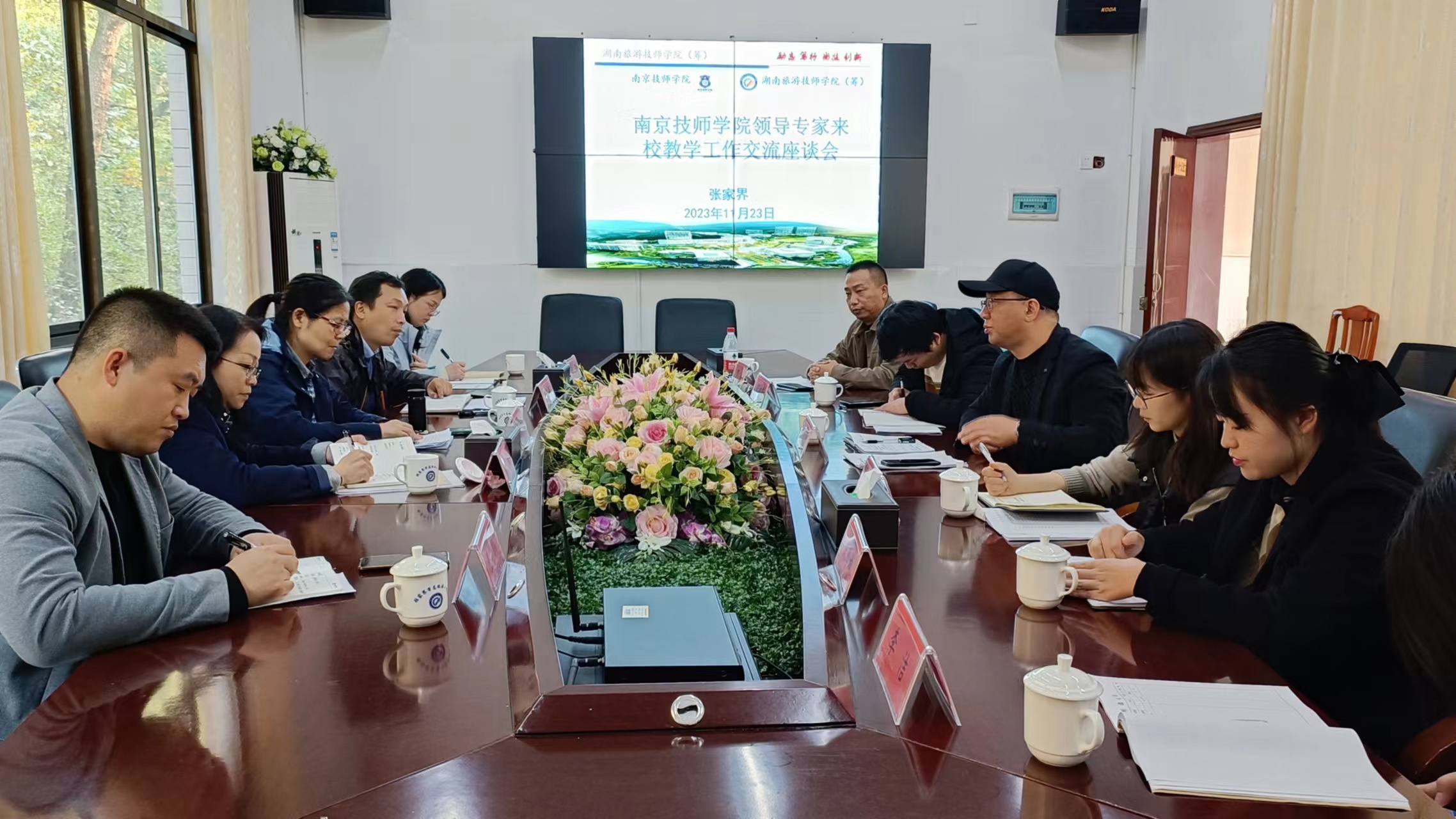 为深入贯彻《湖南省人民政府江苏省人民政府〈关于印发张家界市南京市对口合作实施方案(2022-2026)〉(湘政函〔2022〕186号)》文件精神,加强两市职业教育交流,进一步落实两校对口合作框架协议,11月22日至24日,安博电竞·(anbo)官方网站选派教务处处长鲍咏梅、学生工作处处长赵越、组织人事处副处长蒋琳、智能制造系教研室主任刘慧、教务处干事王华鹏等五人赴湖南旅游技师学院(筹)开展对口合作调研交流活动。