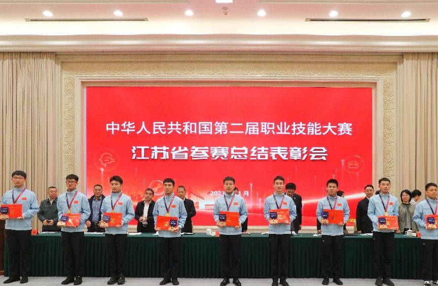 11月7日,中华人民共和国第二届职业技能大赛江苏省参赛总结表彰会在南京西康宾馆隆重举行。我校水处理技术项目金牌选手杨艺杰受邀参加表彰大会并上台领奖。