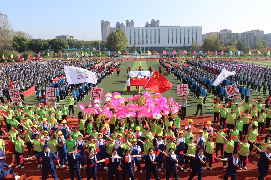 舞动的扇子灵动飘逸,仿佛是时间的笔触,在历史的长卷上勾勒出中国75年来的辉煌历程。身穿工装的同学们,代表着年轻一代的朝气与希望。由无人机升起的充气火箭,更成为开幕式中的一抹亮色,以科技感十足的方式展示了中国航天事业的蓬勃发展。