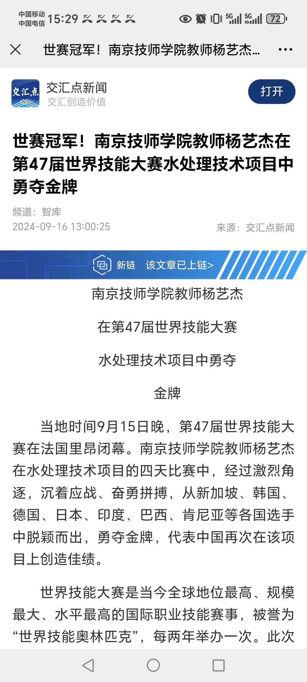 《交汇点新闻》—世赛冠军!安博电竞·(anbo)官方网站教师杨艺杰在第47届世界技能大赛水处理技术项目中勇夺金牌