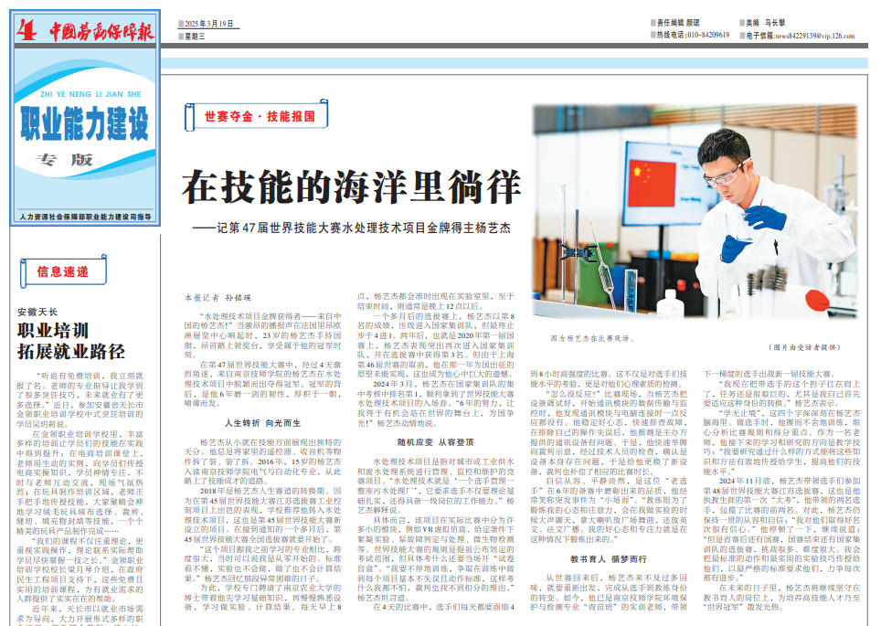 《中国劳动保障报》在技能的海洋里徜徉—记第47届世界技能大赛水处理技术项目金牌得主杨艺杰