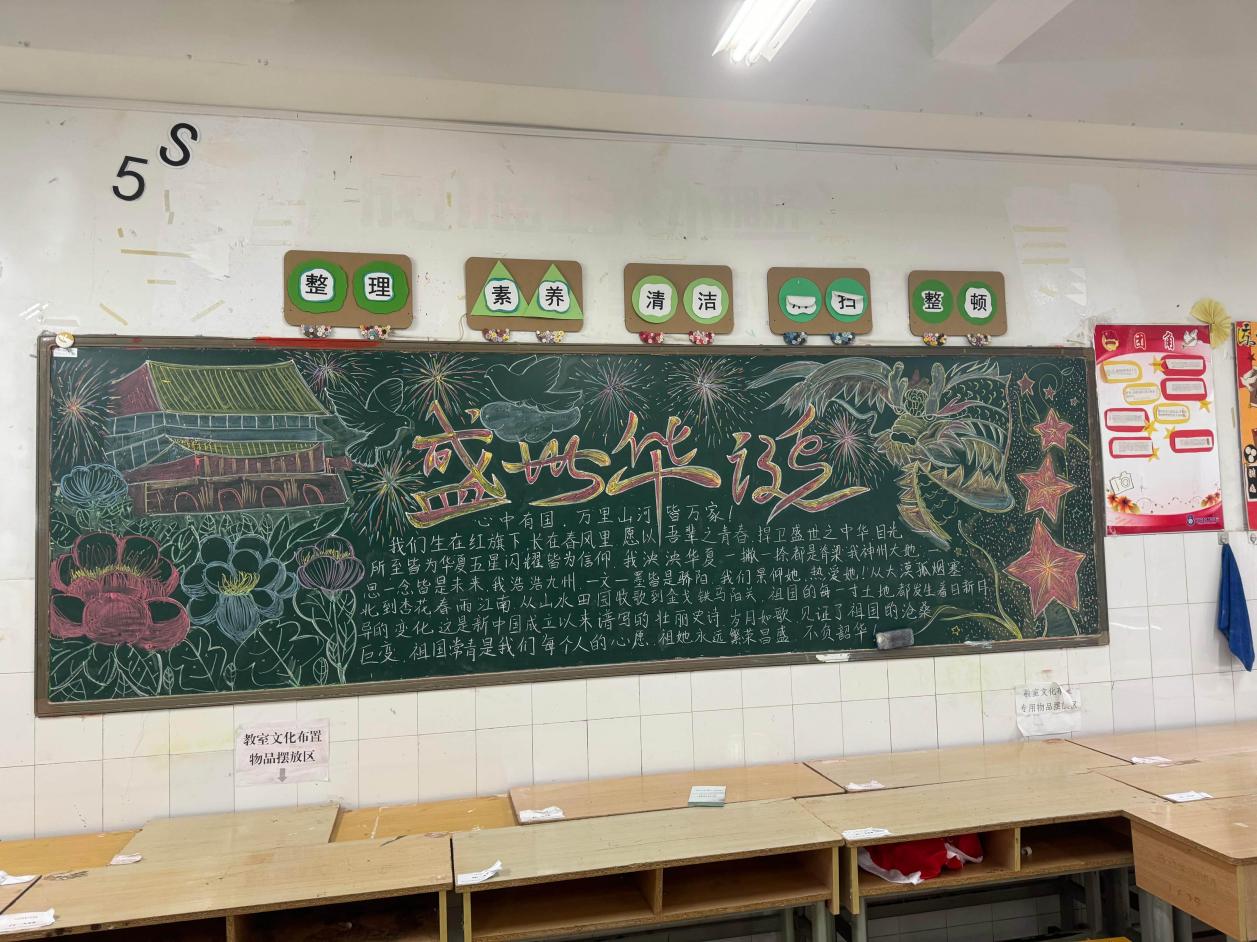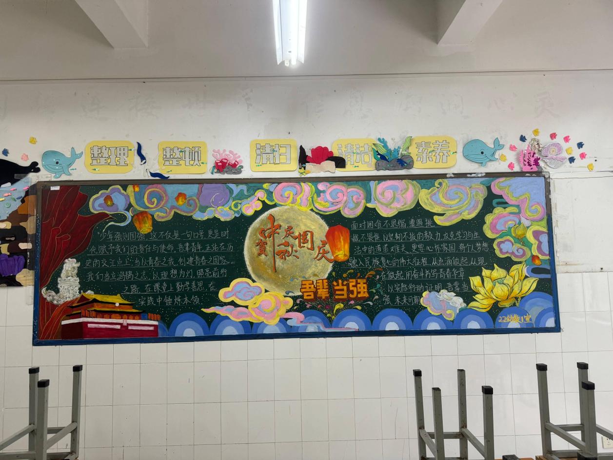 自 9 月 25 日学院团委发布活动通知以来,各班级迅速响应,利用课余时间投入黑板报的设计与绘制工作。同学们围绕 “祖国历史成就”“新时代发展成果”“青年责任担当”“爱国故事分享” 等核心方向,将家国情怀融入版面创作:有的以恢弘的红色主调勾勒祖国发展脉络,有的用细腻的插画再现革命先辈事迹,有的结合专业特色融入校园文化元素 —— 如珠宝首饰设计专业班级以精致纹样点缀报头,计算机应用专业班级用数字化设计理念优化版面布局,每一幅作品都主题鲜明、立意深刻,既展现了扎实的书写与绘画功底,更传递出新时代技工学子炽热的爱国情怀与使命担当。